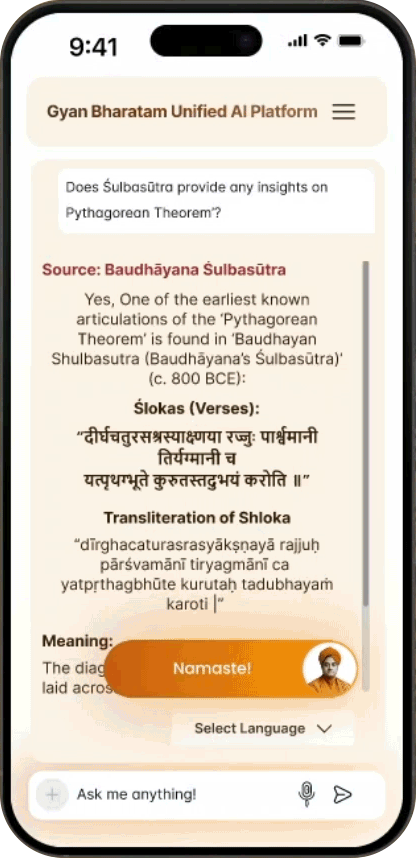 Trained on one of the world’s largest indigenous corpora – over 1+ crore manuscripts spanning science, arts, philosophy, mathematics, and more.
